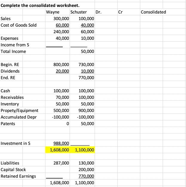 Solved Wayne Company Purchased 100 Of Schuster Company On Chegg Com
